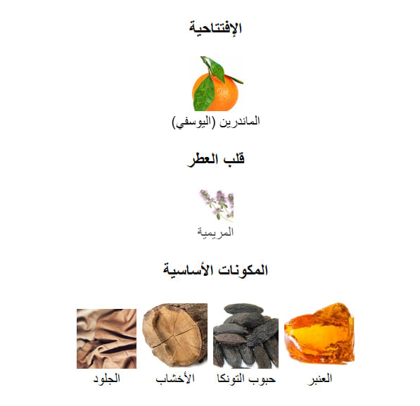 - العنبر / الجلود / خشبي / اروماتك / الحمضيات/ الفانيلا/ حيواني / توابل ناعم /حلو